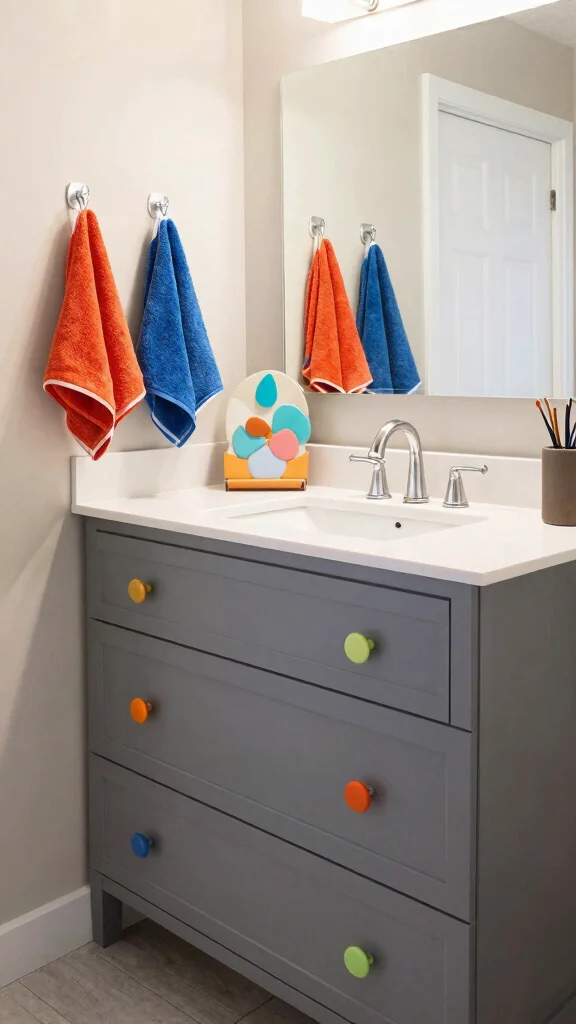 Fun fact: a gray bathroom vanity with colorful accents can boost perceived space by up to 20% while staying eco-friendly. Bright pulls and bold backsplashes inject personality without overwhelming the neutral palette or requiring a full remodel.