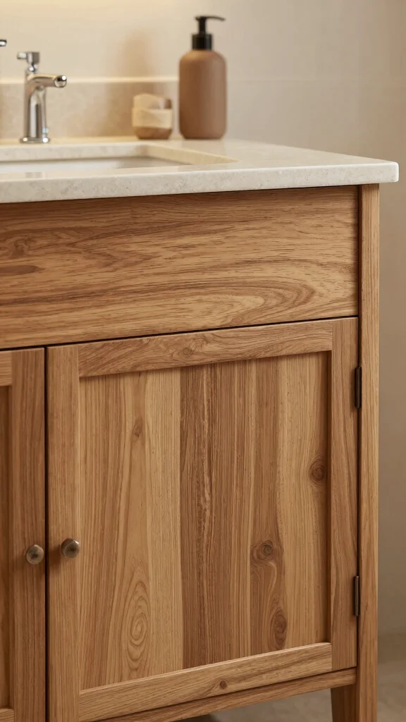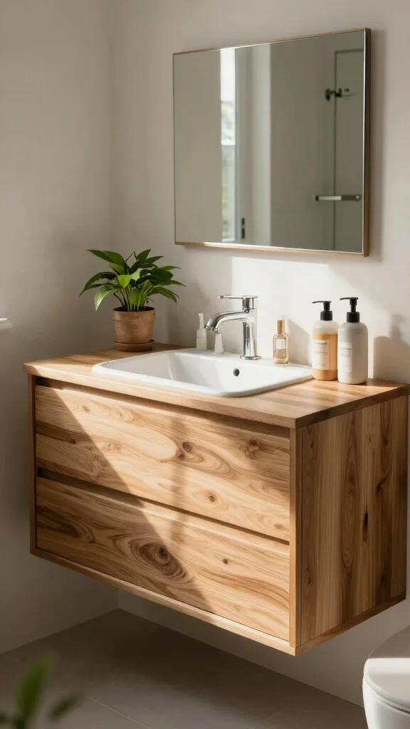 This approach ensures your bathroom remains stylish and functional, showcasing the natural beauty of wood.