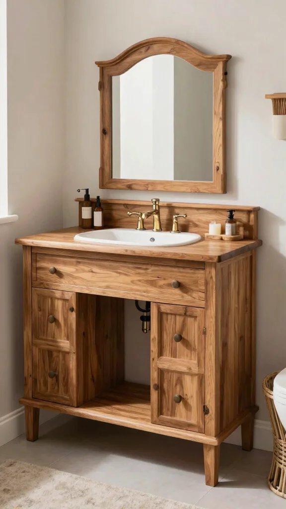 Rustic farmhouse style captures warmth and comfort, making a wooden bathroom vanity the perfect fit for this aesthetic. Think of distressed wood finishes paired with open shelving and wrought iron accents to create an inviting atmosphere. This style invites casual elegance, turning your bathroom into a cozy retreat.