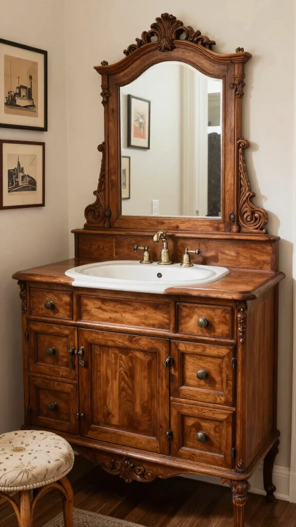 Infuse your bathroom with vintage charm by choosing a wooden vanity that features ornate details and intricate carvings. This style brings a sense of history and character, often highlighted by unique hardware and antique finishes. By combining vintage vanities with modern amenities, you create a dynamic contrast that enhances both style and functionality.