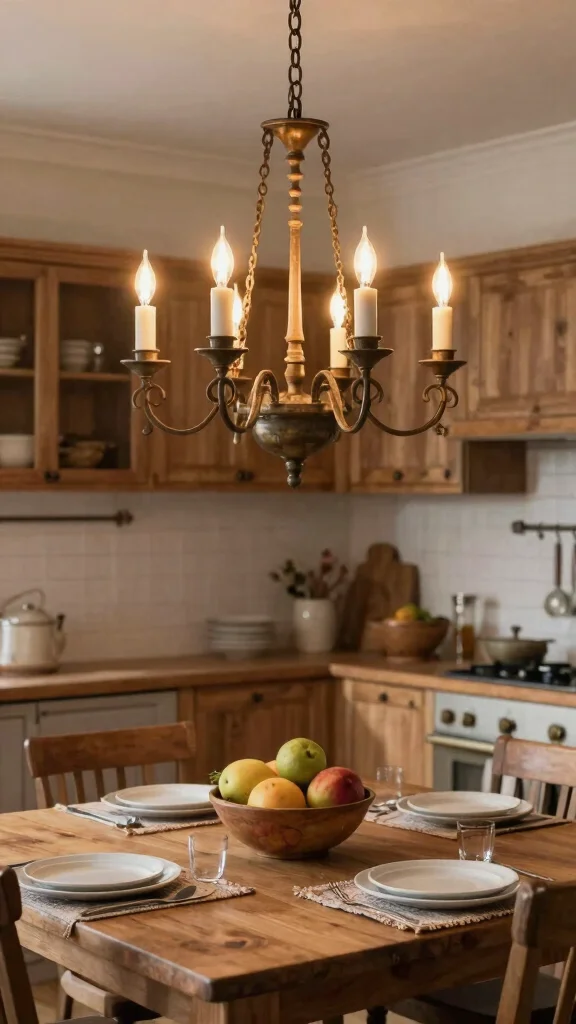 Fun fact: a 24–30 inch rustic chandelier can effectively illuminate a 120–150 sq ft kitchen with a warm, inviting glow. Pair it with warm bulbs and a dimmer to keep rustic kitchen lighting cozy for gatherings without overpowering lighter walls.