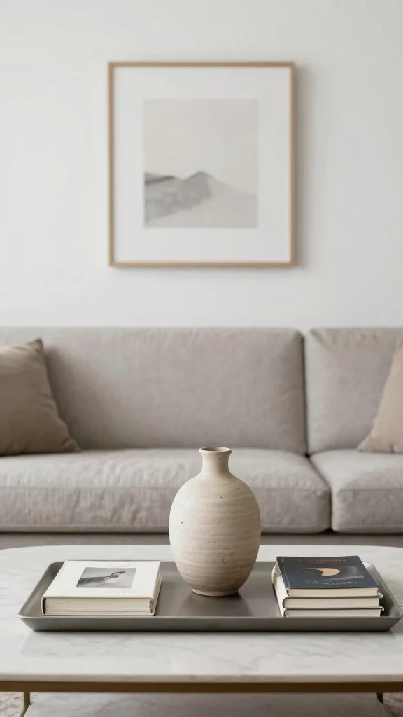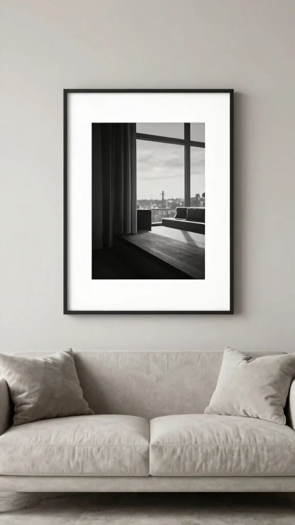 Neutral artwork can enhance your living room’s sophistication, perfectly aligning with minimalist principles.