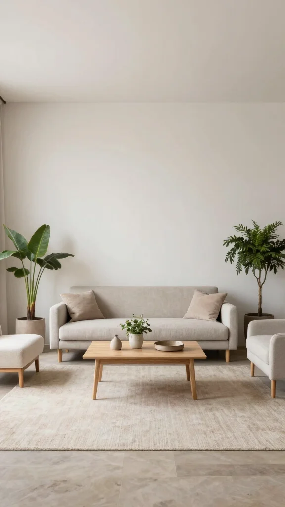 A neutral color palette is a hallmark of minimalist design, creating a serene backdrop for your living room. Shades like white, beige, gray, and soft earth tones can open up a small space, making it feel calm and expansive. This versatile foundation allows for easy incorporation of subtle accents that enhance the overall design.