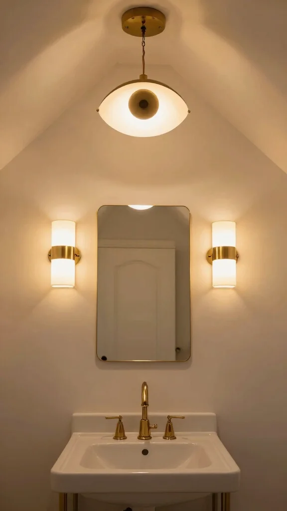 Lighting isn’t an afterthought in attic bathroom ideas slanted ceiling spaces. Choose unique lighting fixtures like pendant lights or vintage sconces, then layer ambient, task, and accent lighting to transform mood and function in one go.