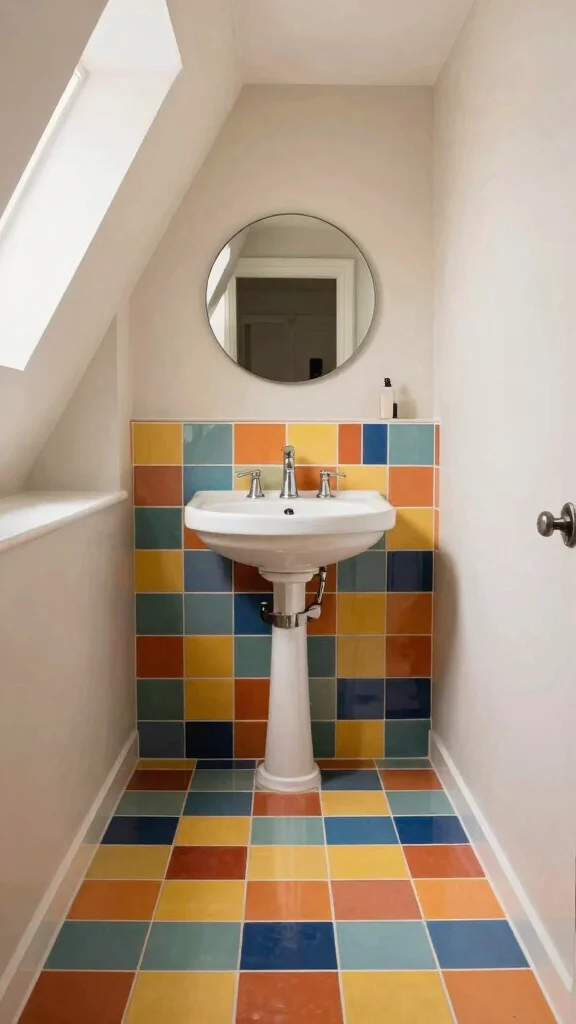 Fun fact: colorful tiles can visually brighten a small attic bathroom ideas slanted ceiling and even make the space feel up to 20% larger. Pair bold mosaics with neutral walls to keep the look lively, not chaotic—then enjoy a vibrant, easy-to-clean oasis.