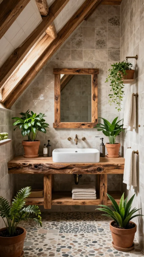 Bring the tranquility of nature into your attic bathroom with nature-inspired decor. This design trend embraces fresh greenery, natural materials, and earthy tones to create a calming atmosphere. With proper light, plants can thrive in attic spaces, adding life and vibrancy to your bathroom.