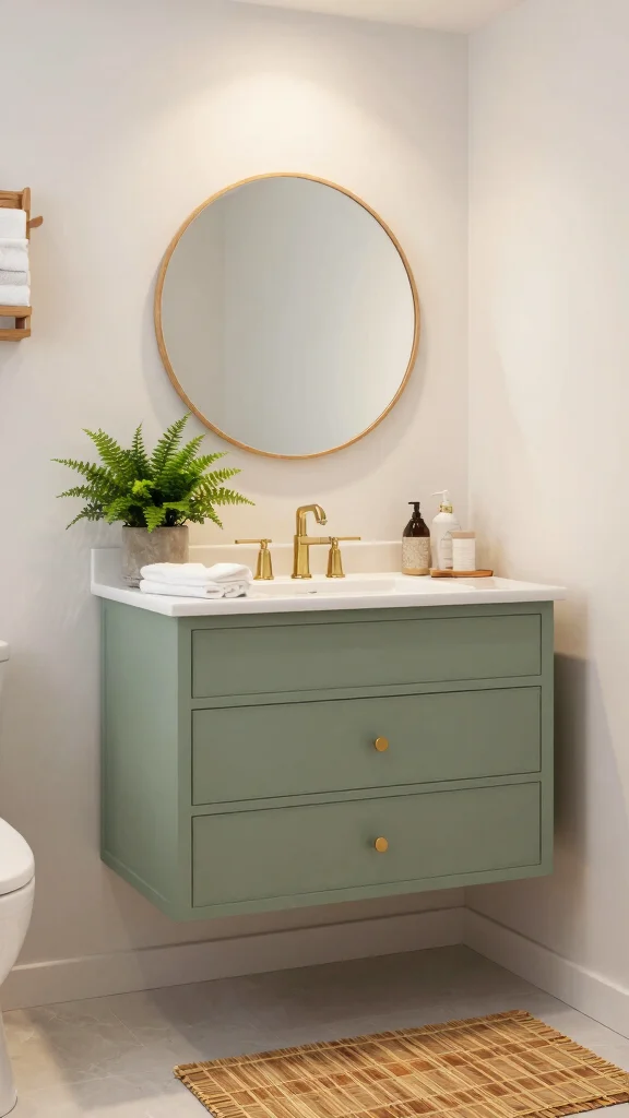 Choosing bathroom vanity colors is like setting a mood—soothing sage green whispers calm, while white or wood accents keep the space bright and fresh. Pro tip: couple sage green with natural textures to boost serenity and style without breaking the bank.