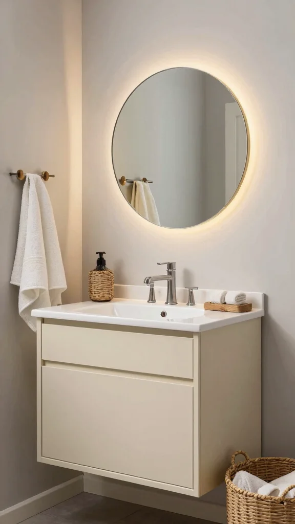 Use contrast to highlight the vanity color—light vanity with darker countertops or vice versa—without overwhelming the space.