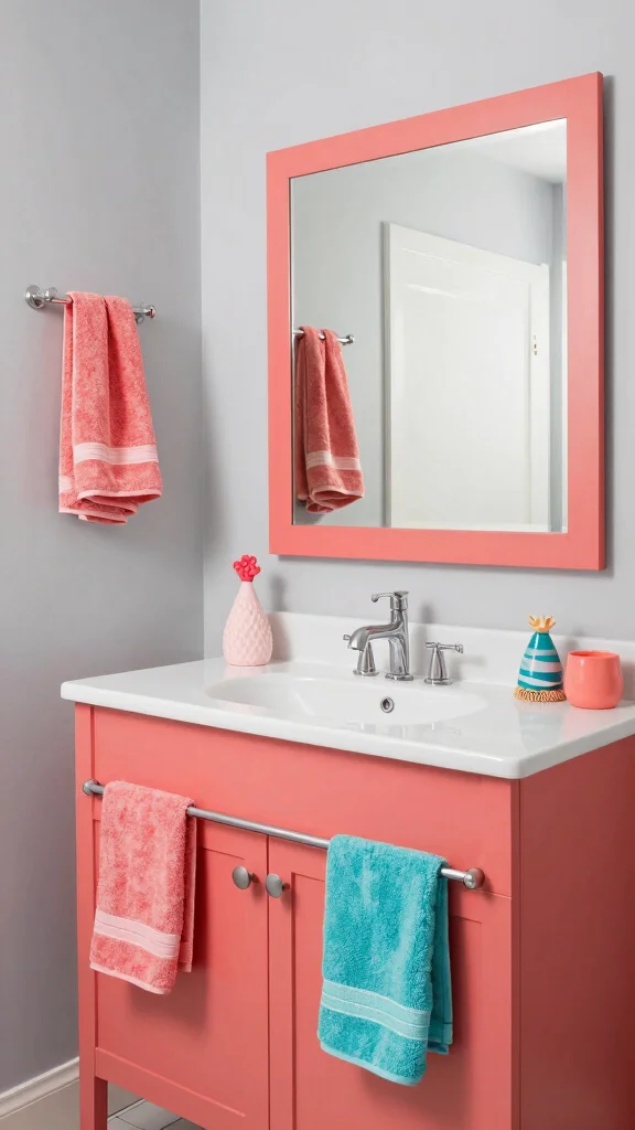 Here are some ways to style your bright coral vanity: