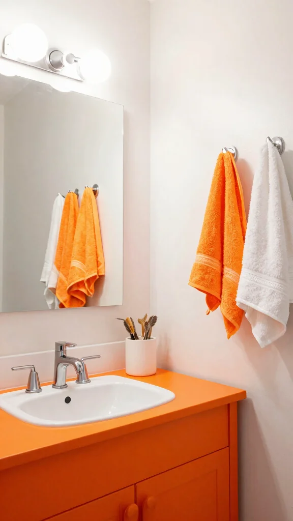Bright tangerine is an eye-catching color that injects a vibrant pop into your bathroom. This energetic shade uplifts the space, making it feel playful and fun. Pairing tangerine with neutral tones like white or gray helps to balance its brightness while creating a lively atmosphere.