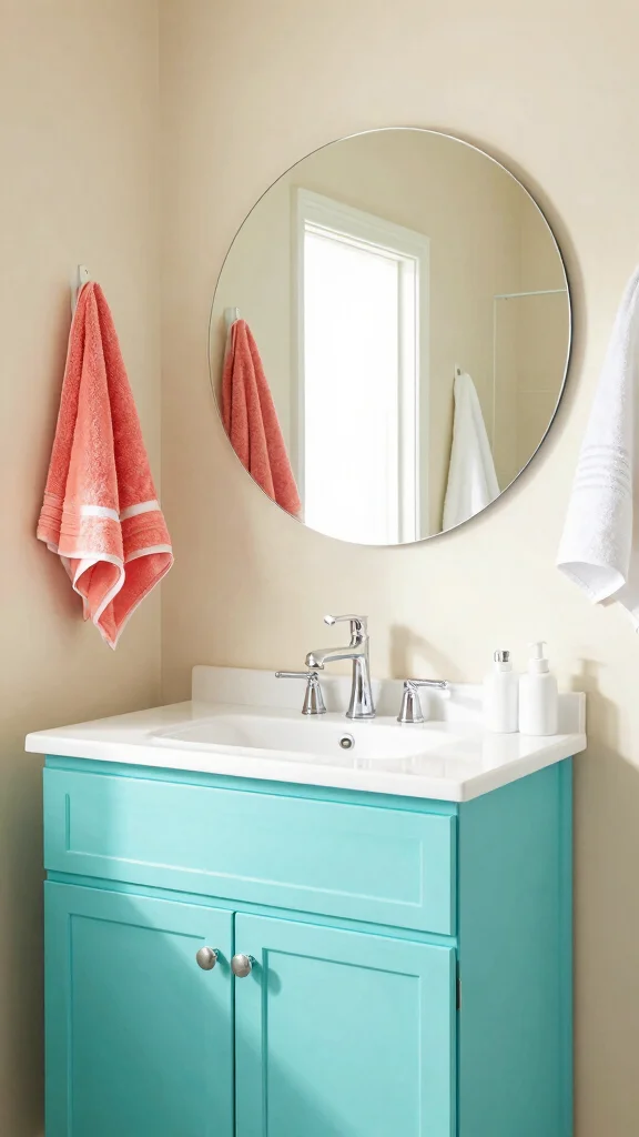 Fun fact: Aqua walls can boost perceived brightness by up to 15%, making small bathrooms feel larger. Pair with sandy beige or crisp white for a beachy mood, using non-toxic paints for an eco-friendly tweak in bathroom vanity colors.
