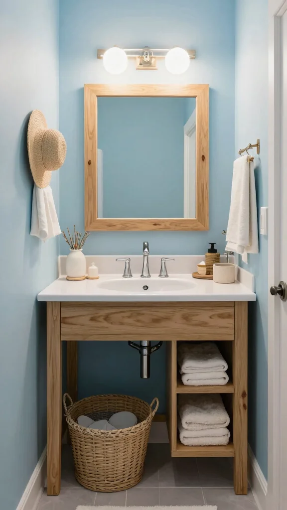Transform your small bathroom into a serene oasis with a spa-inspired vanity setup. Opt for natural materials, such as wood or stone, to create a calming environment that feels like a retreat. Integrating soft lighting and reflective elements can enhance the overall vibe, promoting relaxation. Use earthy tones and minimal accessories to create a soothing atmosphere.