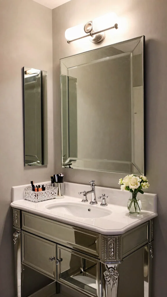 Mirrored vanities are an excellent way to introduce a touch of elegance and opulence to your bathroom. Their reflective surfaces can visually expand the space, making even the smallest bathrooms feel more open. Opt for intricate mirror designs or a sleek mirrored finish to create versatility in your decor. Pair these with luxurious accessories in gold or silver tones for a cohesive and glamorous look.