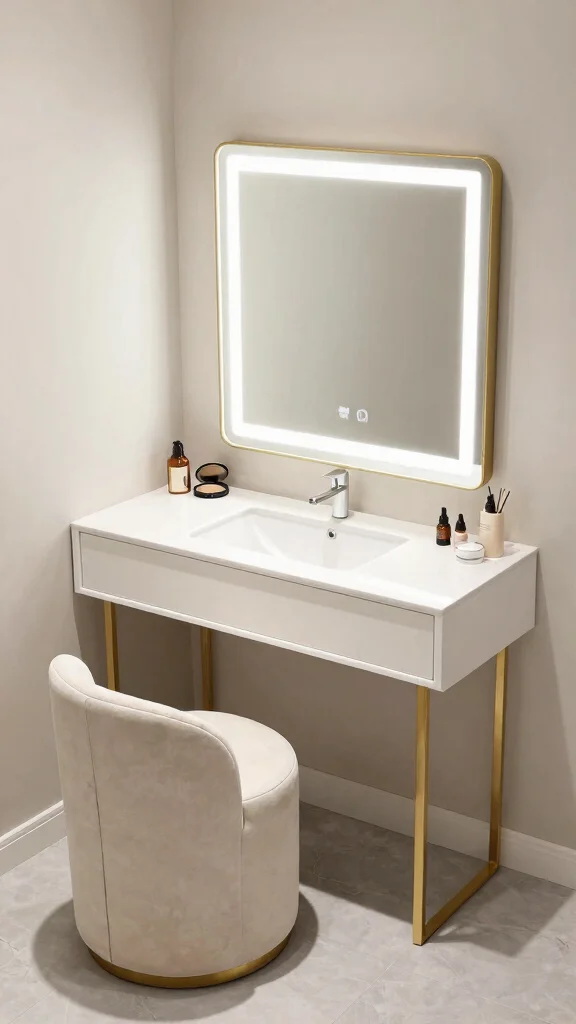 Did you know that a multi-functional vanity can save up to 40% of floor space in small bathrooms? Keep it simple: choose integrated storage and a foldable mirror for a chic, clutter-free bathroom with makeup vanity.