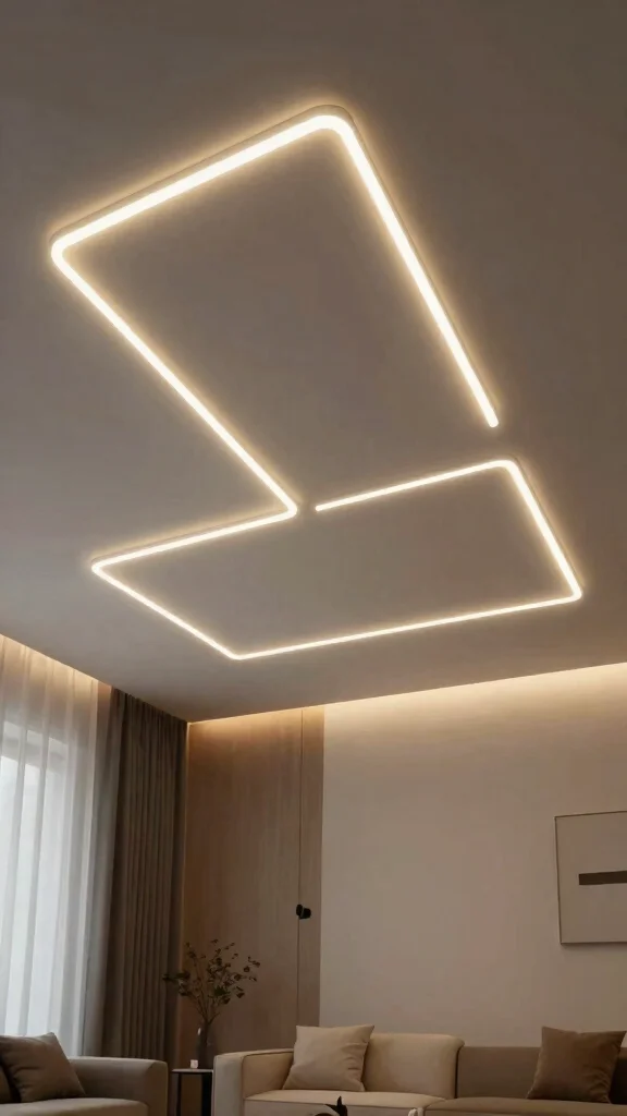 Create a stunning visual impact by integrating illuminated art into your ceiling design. Using eco-friendly LED lights, outline shapes or patterns that enhance your space while providing functional illumination. This approach marries functionality with artistic expression, making a bold statement.