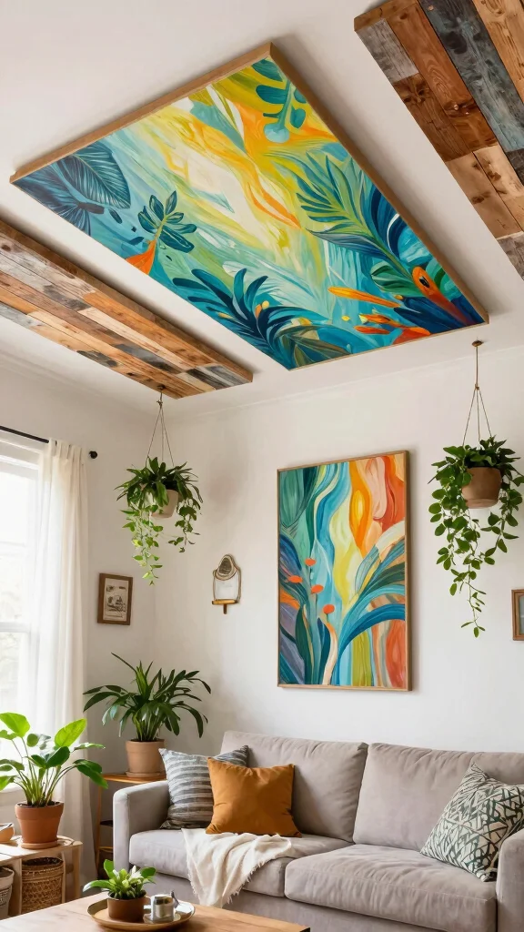 – Nature-Inspired Ceiling Murals: Use mural artists or DIY techniques to bring the beauty of nature indoors, creating a serene atmosphere.