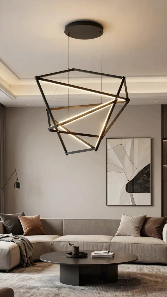 Fun fact: Using two geometric metal fixtures at varying heights can boost perceived ceiling height by up to 15%. Pair matte black with brass or copper for a bold focal point in ceiling lighting ideas that still reads sustainable and chic.
