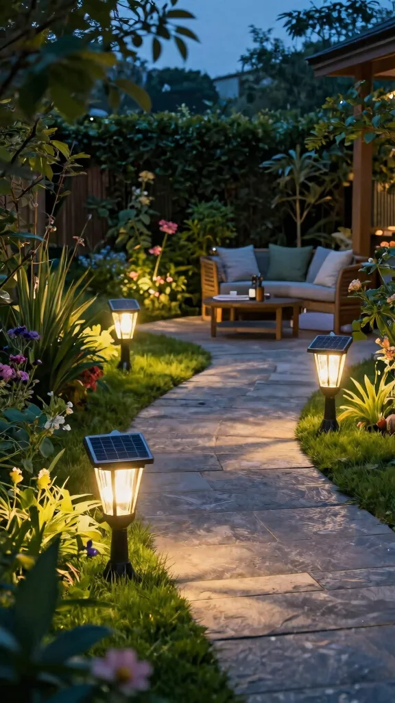 Install solar-powered outdoor lights to illuminate your space sustainably and reduce electricity costs.