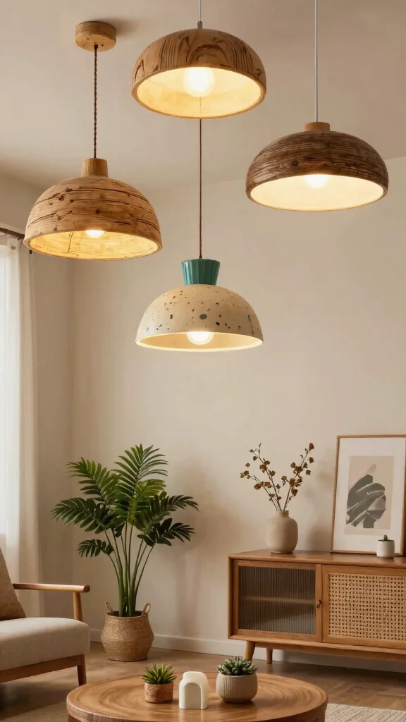 Opt for LED flush mounts or bamboo drum shades to enhance your space sustainably while saving energy.