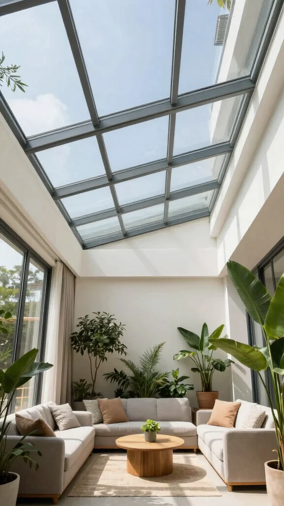 For a dramatic statement, glass ceiling panels can elevate any room’s design.