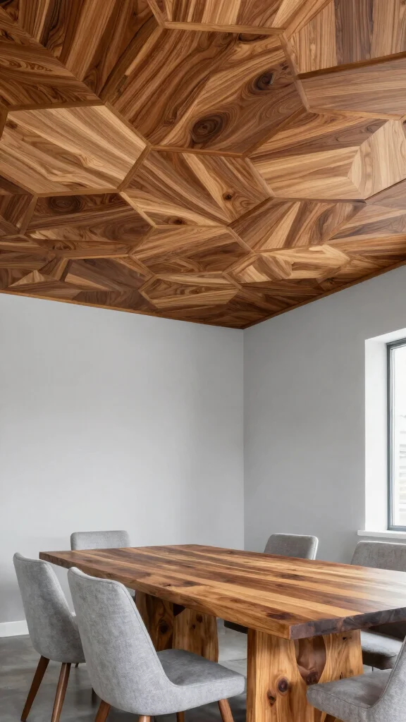 Geometric wood panels offer a fresh and modern twist to traditional ceilings.