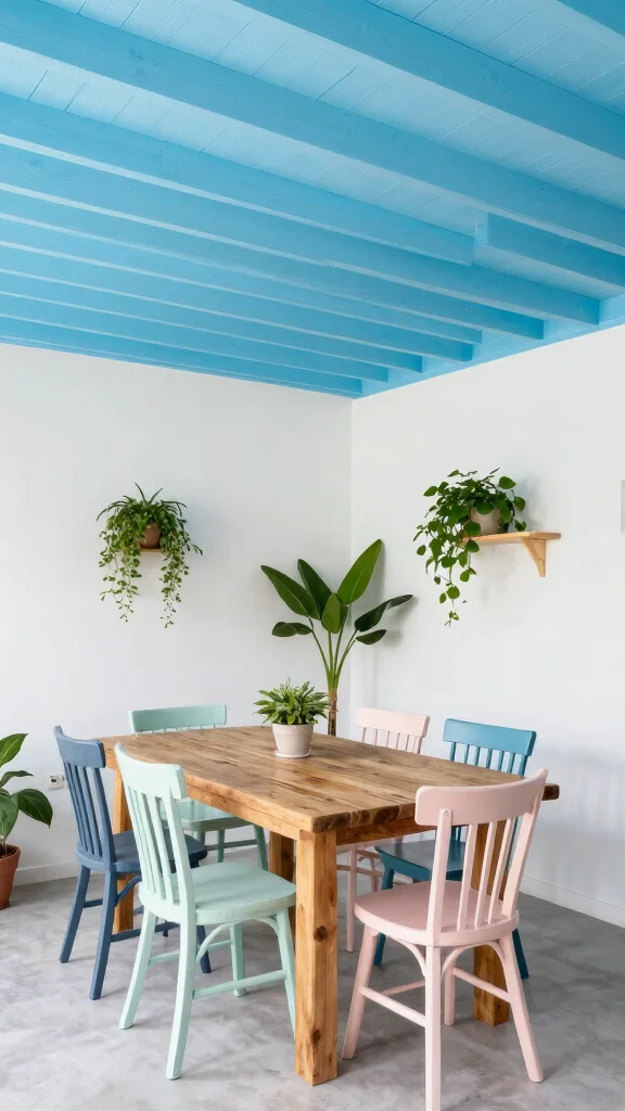 This approach creates a captivating ceiling that inspires creativity and liveliness in your space.