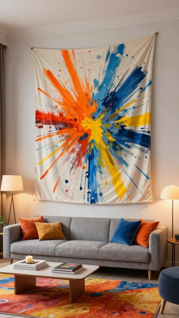 – Use bold abstract tapestries as statement pieces