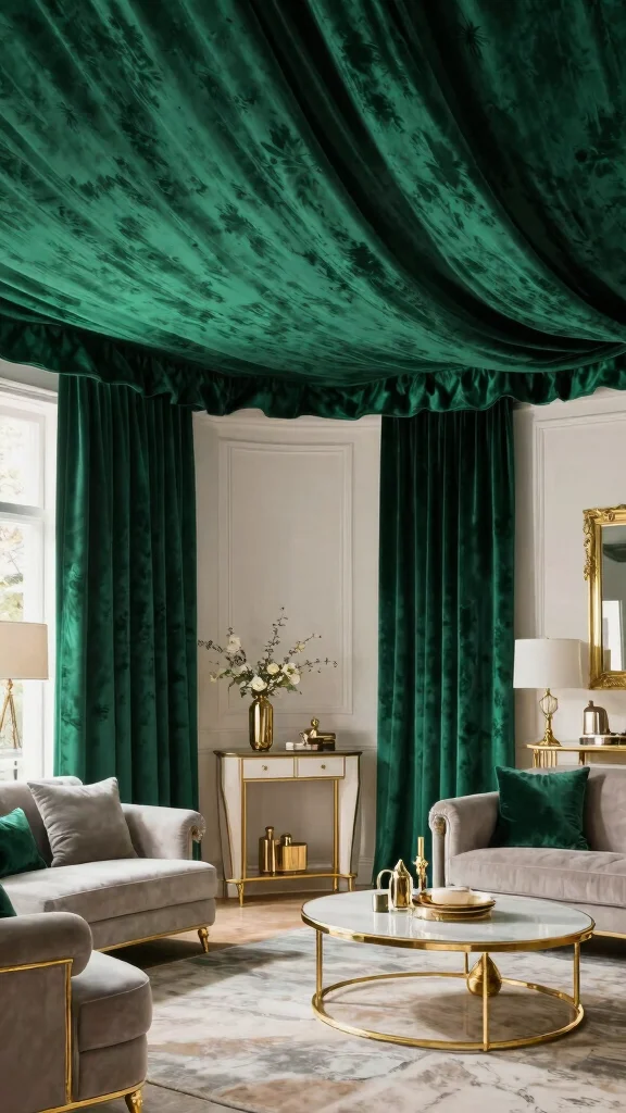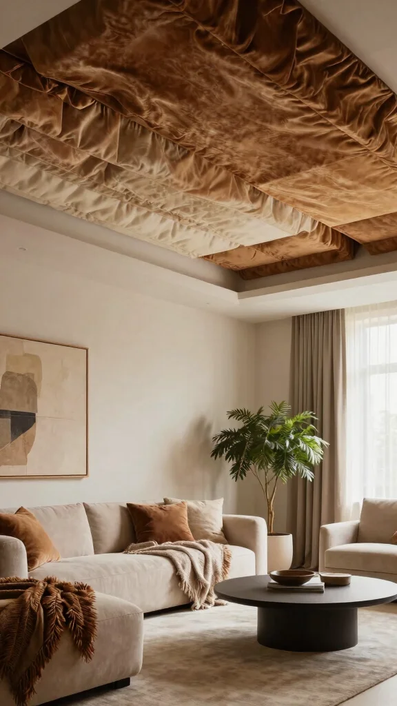 Layered fabrics elevate your fabric ceiling ideas into a soft, dramatic focal point. Start with two textures—velvet and linen—and keep colors cohesive to add depth without crowding the space.