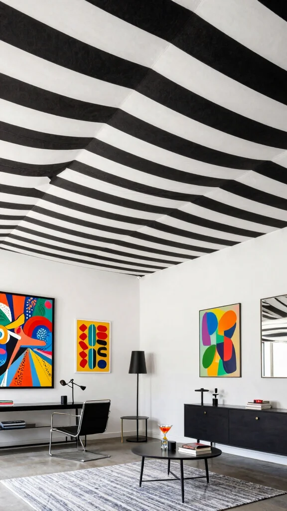 For a bold statement, striped ceiling treatments can introduce a graphic element to your decor. Stripes can create the illusion of height or width, depending on their orientation, infusing energy and movement into your space.