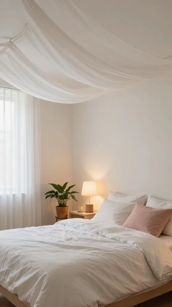 To implement sheer layers, choose light-colored fabrics that blend with your decor. Layering these fabrics can add depth, while soft lighting can enhance the ethereal feel of the room.