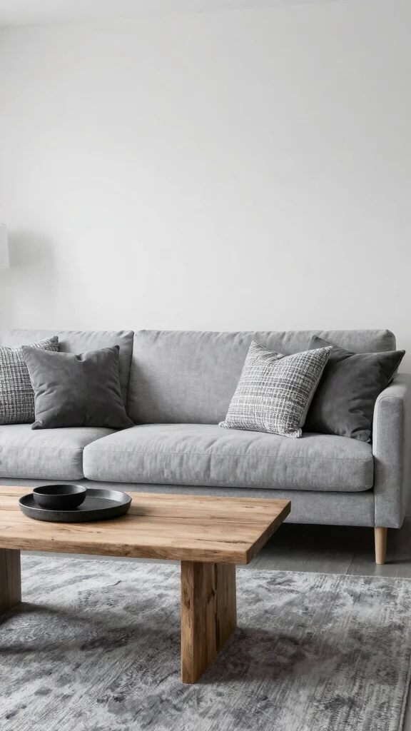 Choose furniture made from sustainable materials. Wood, metal, and natural fibers not only look great but also support eco-friendly practices. Look for pieces crafted from reclaimed wood or recycled materials to enhance the sustainability of your grey minimalist living room.