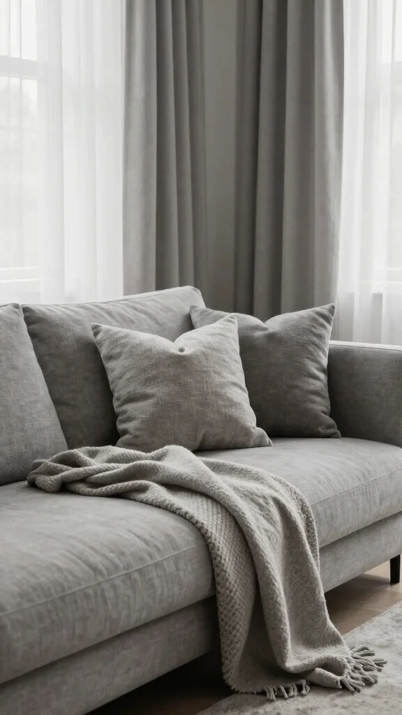 Use natural fibers like cotton, linen, or wool for a cozy feel, and incorporate soft throw blankets and cushions in varying shades of grey. Additionally, window treatments that provide privacy while allowing natural light will enhance the overall aesthetic.