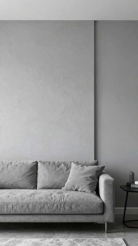 Select textured finishes in grey tones that complement your palette, and use paint techniques to create dimension without conflicting with your decor. This approach ensures that walls enhance rather than dominate the space.