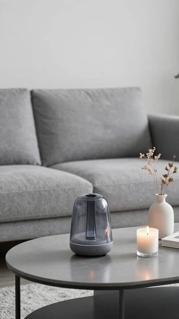Fun fact: scents shift mood in under 5 minutes—perfect for a grey minimalist living room. A lavender diffuser plus a touch of dried flowers can boost calm by up to 25%, without clutter.