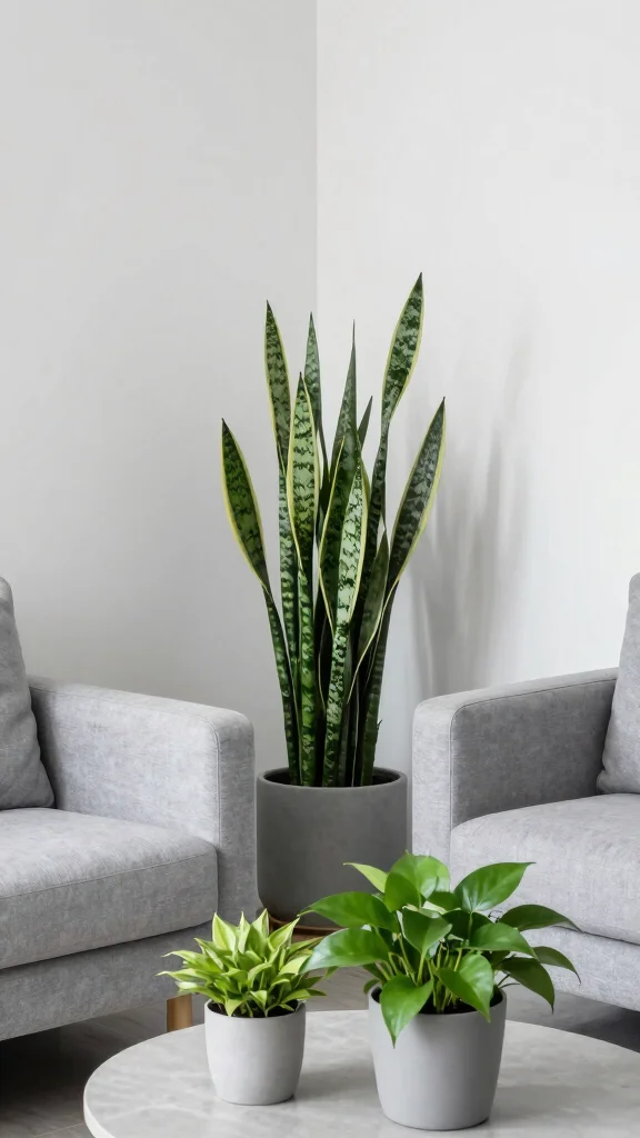 Choose low-maintenance plants like snake plants or pothos that thrive indoors without much care. Simple pots in grey or natural materials like terracotta keep the look cohesive while softening the sharpness of grey tones.