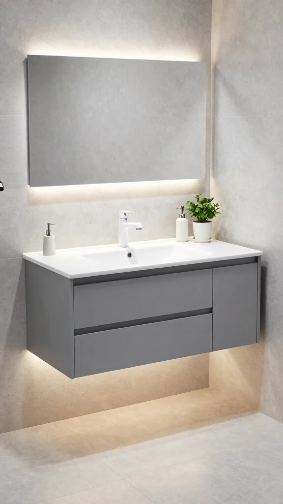Sleek floating vanities embody modern bathroom elegance with their streamlined design. Their suspended structure not only saves space but also creates an airy feel, making your bathroom appear larger and more open. Imagine a soft grey floating vanity paired with a minimalist sink and chic fixtures that enhance the contemporary atmosphere. Adding LED lighting underneath can create a warm, inviting glow during evening hours, transforming the space into a serene retreat.