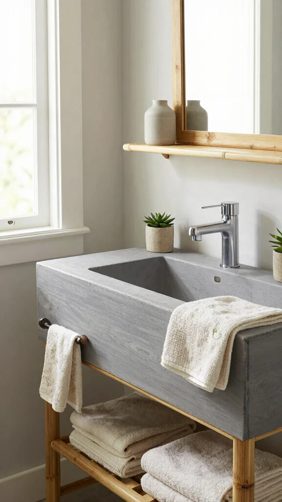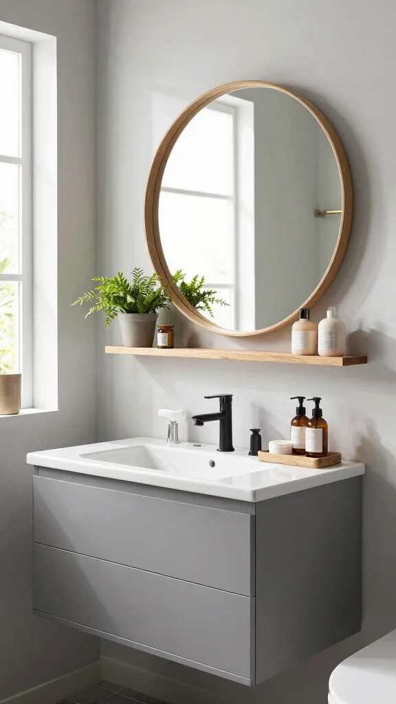 To implement this look, consider selecting a vanity that complements your bathroom’s overall design. Budget-friendly options can include DIY floating shelves or sourcing second-hand fixtures that fit your style. The trend towards open space and minimalism aligns perfectly with this design choice, providing a sense of calm and relaxation.