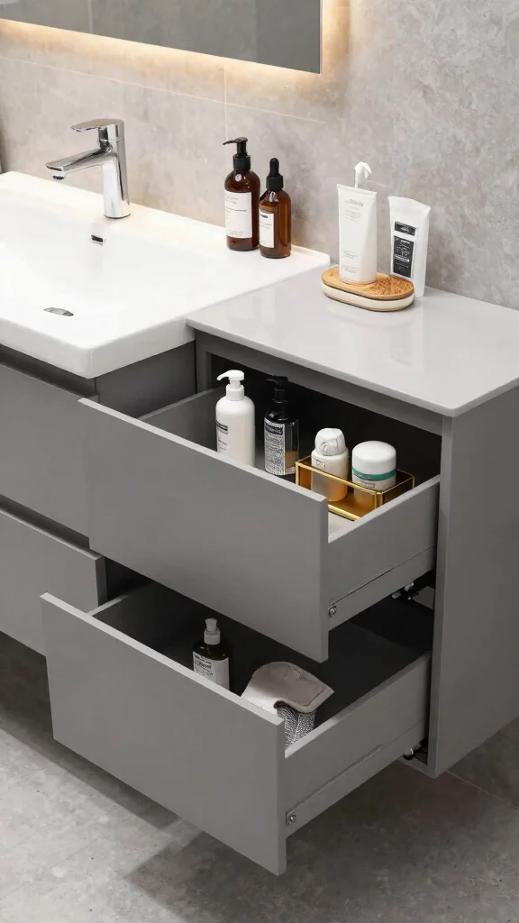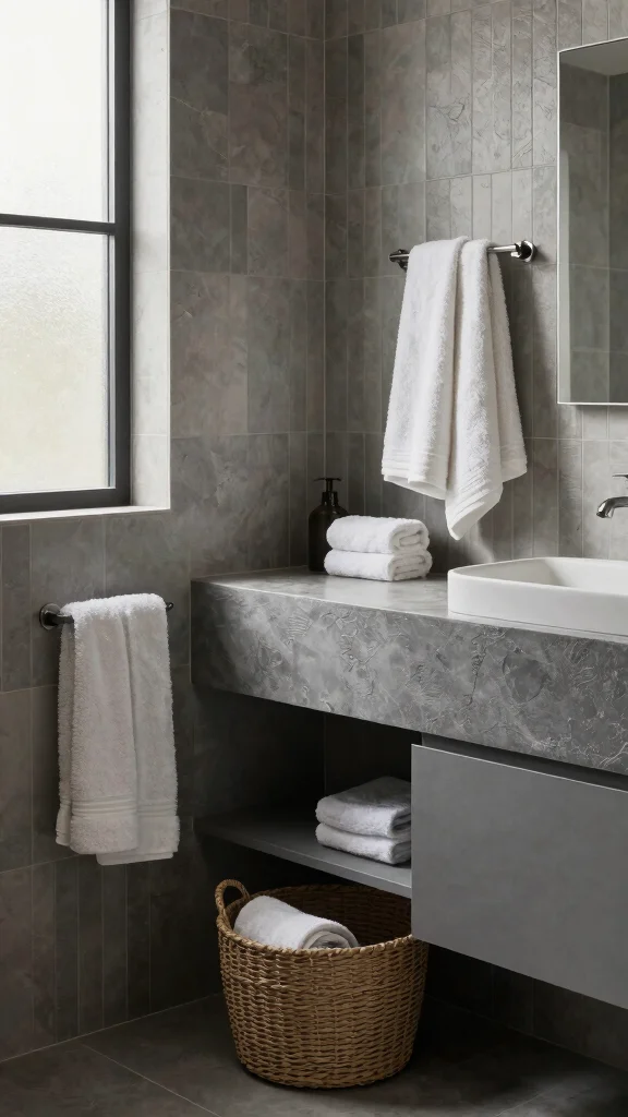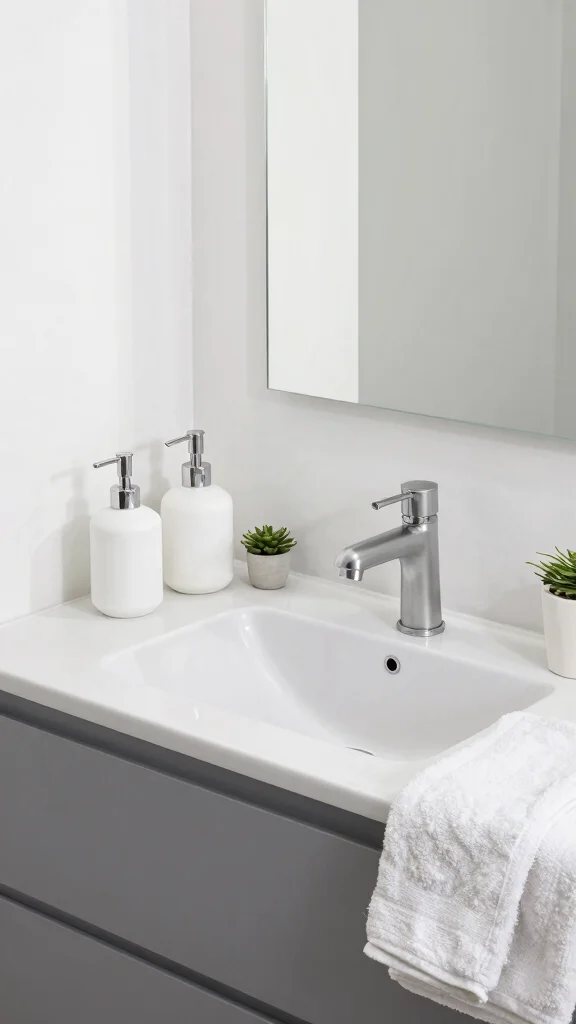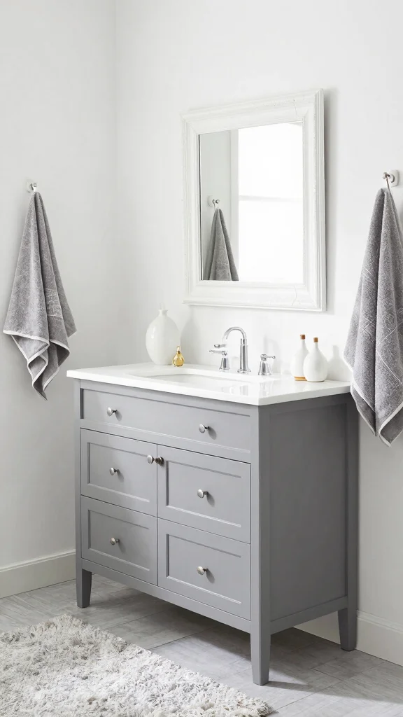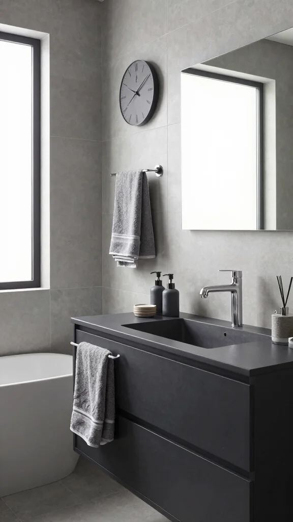 Select minimalist grey accessories that complement your vanity while keeping the overall look uncluttered.