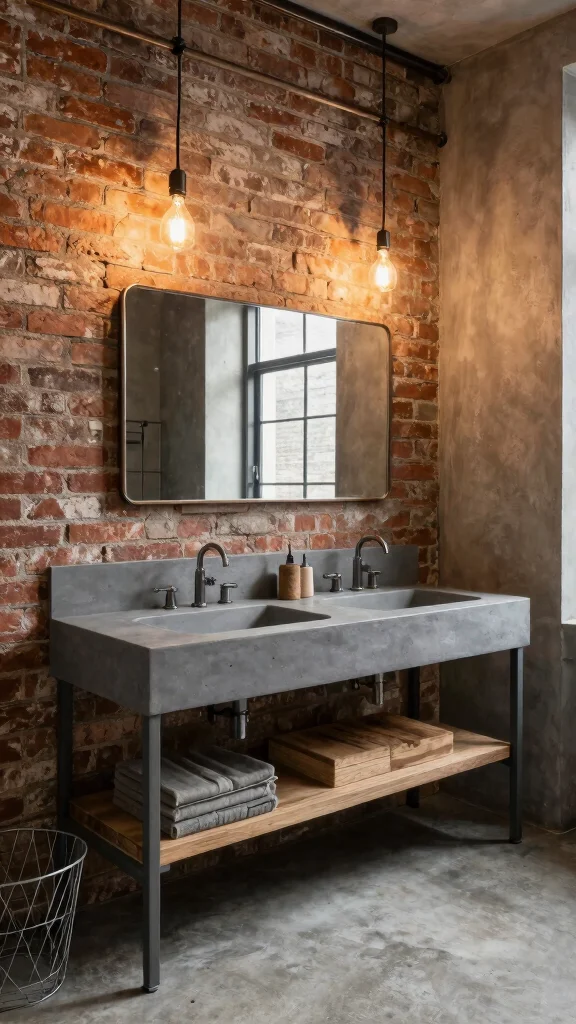 If you’re drawn to an urban aesthetic, industrial-inspired bathroom designs can be incredibly appealing. A grey vanity featuring raw finishes, paired with metal accents like pipe fixtures and exposed brick, creates a striking visual contrast. Imagine the warmth of reclaimed wood shelving or a unique backsplash amplifying the rustic charm of your space.