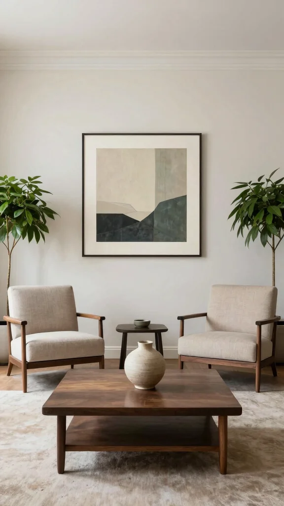 Minimalist art can elevate your living area, creating a soothing atmosphere.