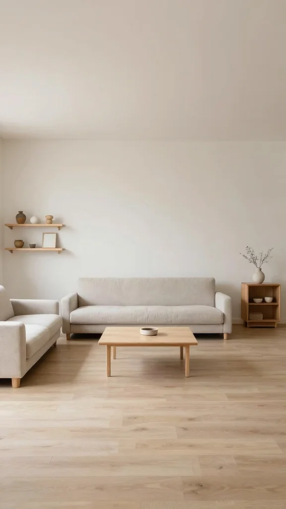 A neutral color palette is vital for achieving a calming ambiance in your Japanese minimalist living room. Soft whites, beiges, and grays work harmoniously together, allowing different design elements to blend effortlessly. This understated color scheme elevates serenity and creates a peaceful retreat.