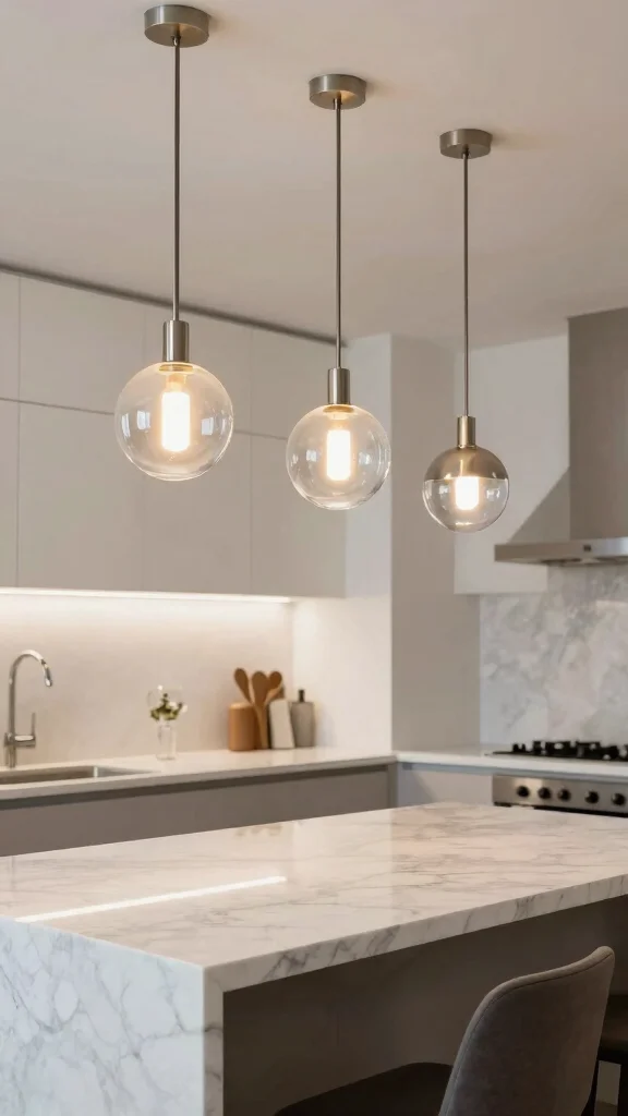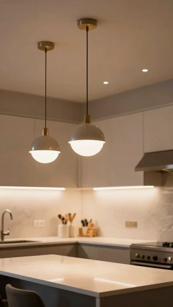 By incorporating varying heights, you create a dynamic lighting scheme that enhances the kitchen’s overall aesthetic.