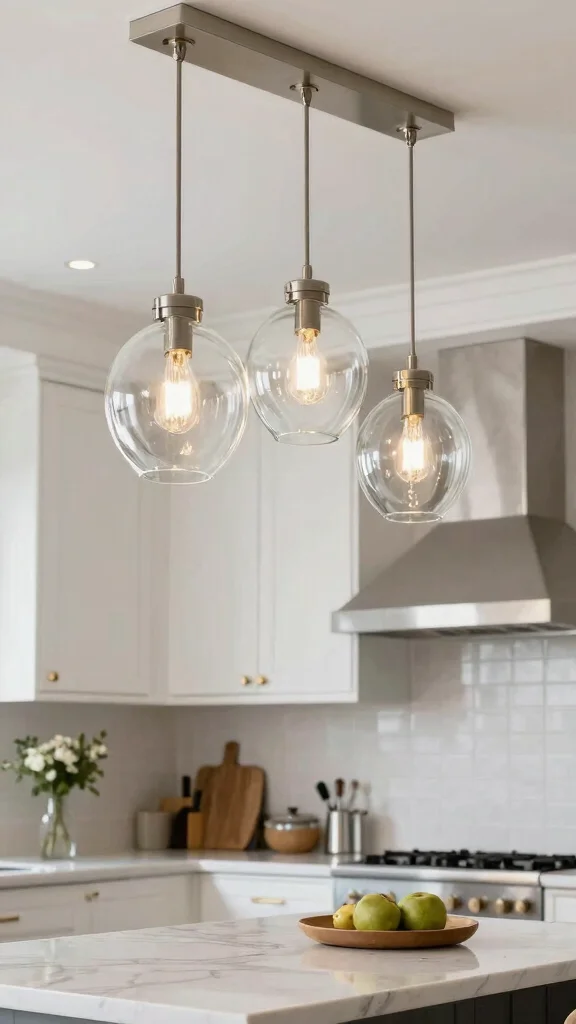 Glass light fixtures are an excellent way to keep your kitchen feeling open and airy. They provide illumination without adding bulk, making them ideal for low ceilings. These fixtures allow light to flow freely throughout the room, enhancing brightness and creating a more spacious feel.