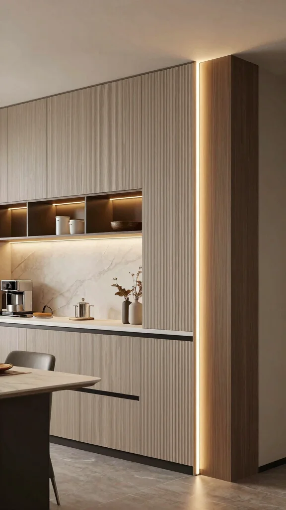 For a creative twist, consider stripe lighting designs that line the edges of your kitchen. These lights can outline shelves, cabinets, or even door trims, adding a unique visual element that provides depth and character to the space. This modern aesthetic emphasizes architectural features while introducing both direct and indirect light.