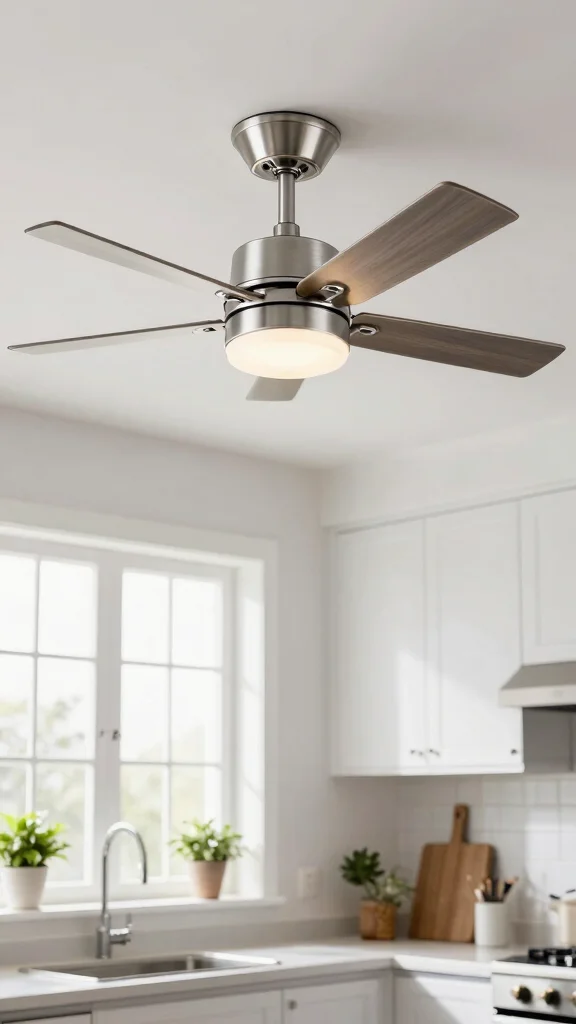 When selecting a ceiling fan, look for sleek finishes that match your cabinetry to create a cohesive look. Ensure the motor operates quietly, allowing for a peaceful cooking environment. This functional piece can also help set a breezy, relaxed atmosphere in your kitchen.