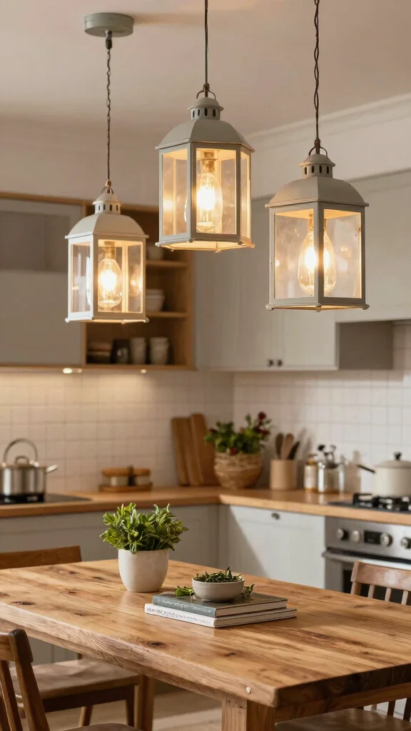 Lantern-style lighting brings a whimsical touch to your kitchen, offering rustic charm that’s perfect for both traditional and modern designs. Hanging lanterns can serve as stunning focal points above islands or dining tables, casting a soft light that enriches the overall ambiance.