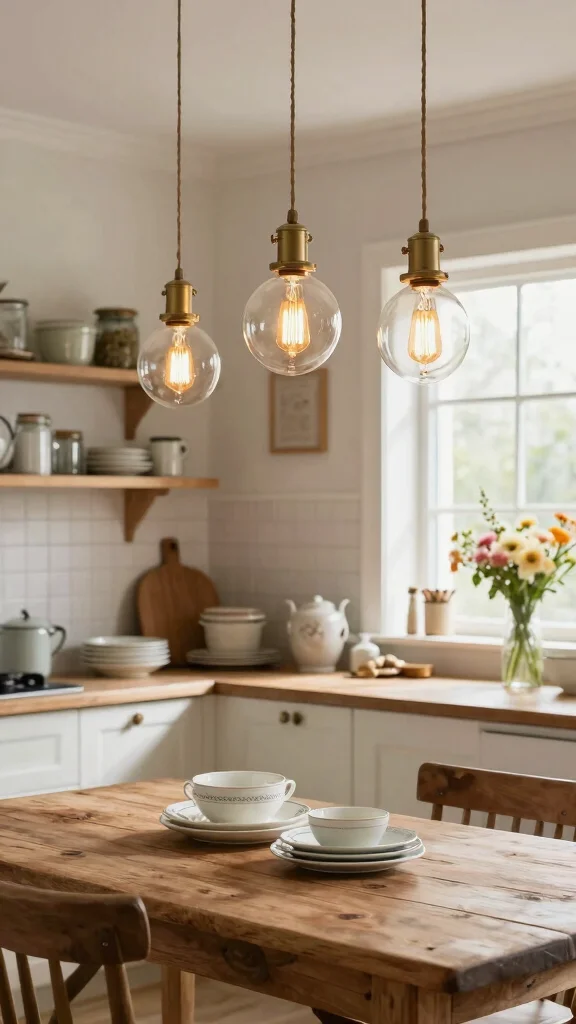 Introduce nostalgic charm to your kitchen with vintage-inspired fixtures. These stylish elements elevate your space while promoting sustainability, especially if sourced secondhand. From ornate chandeliers to minimalist designs, vintage lighting beautifully contrasts with modern appliances, adding character to your decor.