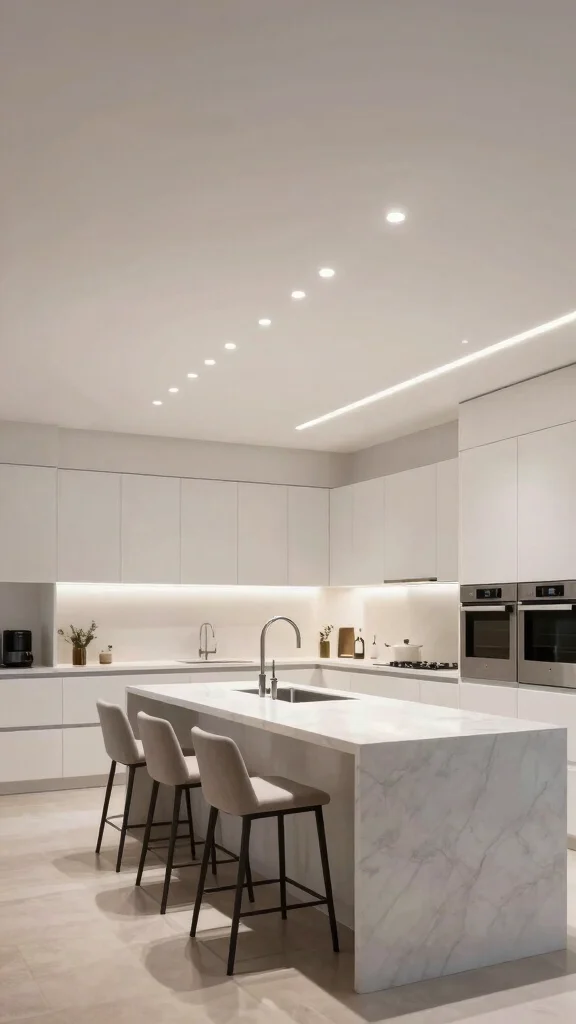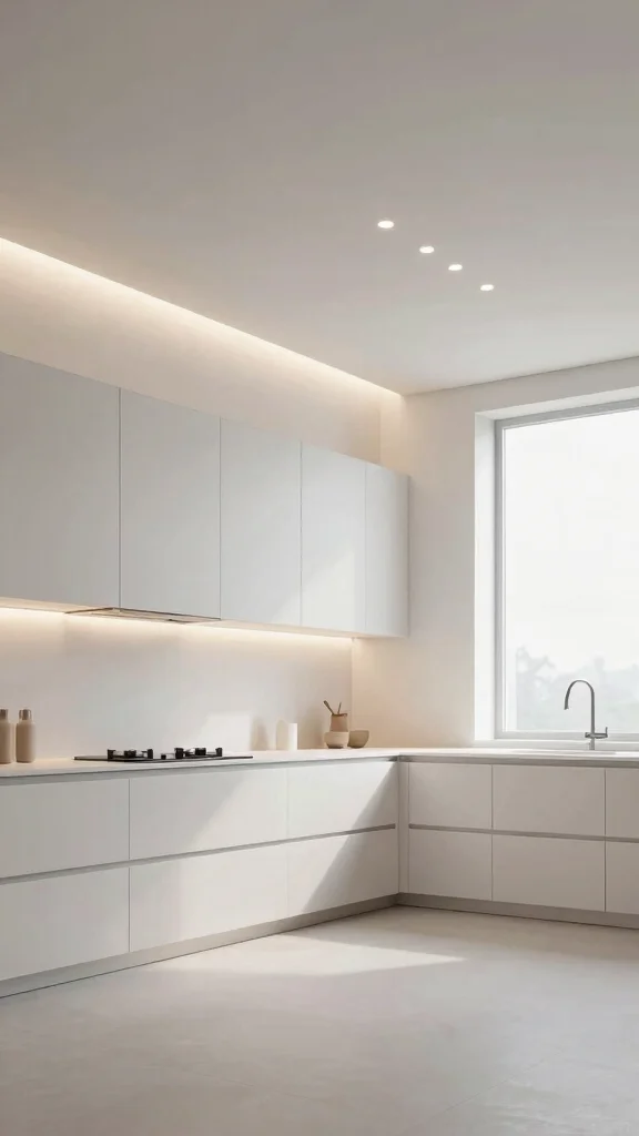 Hidden recessed lighting is perfect for a minimalist aesthetic, as it reduces clutter by keeping fixtures out of sight. The soft glow creates a calming atmosphere that enhances the overall experience in your kitchen.