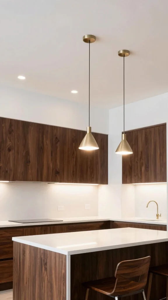 This approach delivers a contemporary flair while ensuring ample light for cooking and gatherings, enhancing the overall appeal of your kitchen.