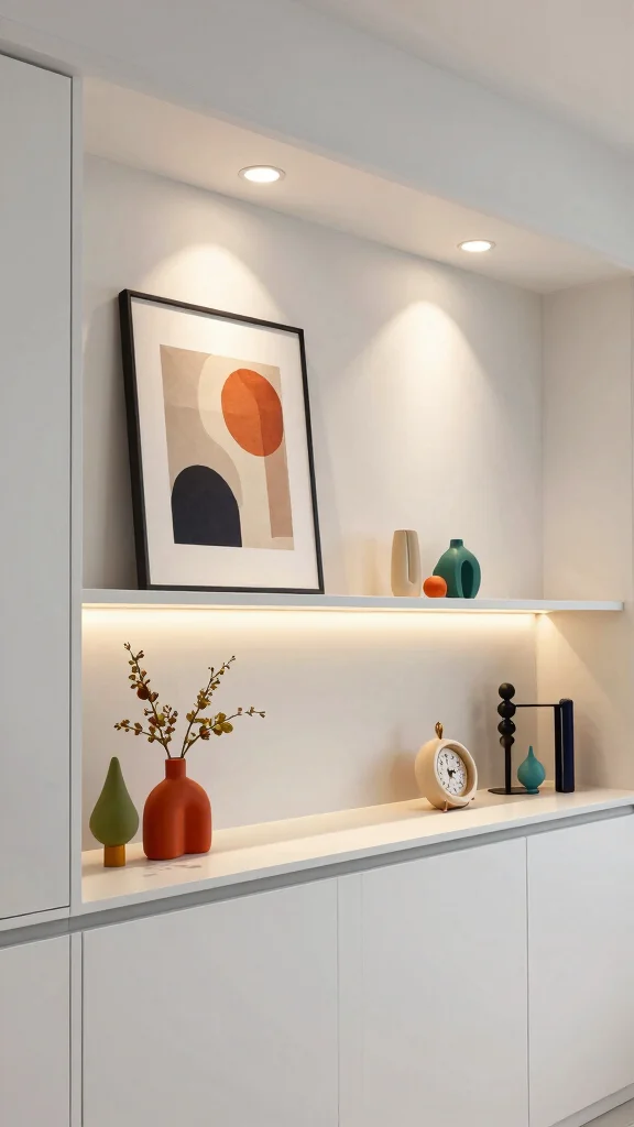 – Use accent lights to showcase artwork or details.